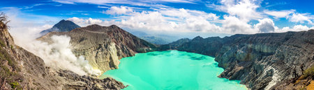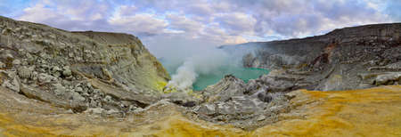 Panorama of crater of active volcano Ijen, Java island, Indonesia