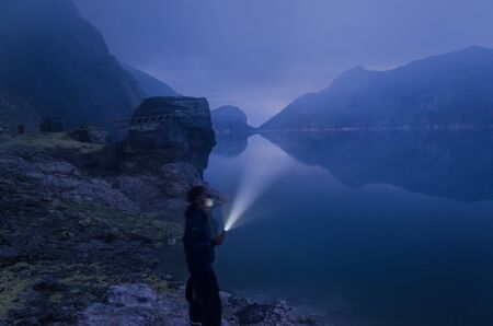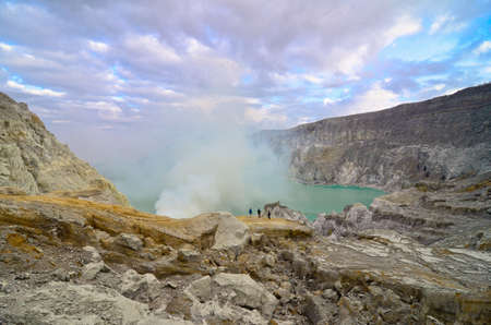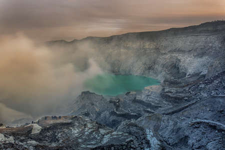 Mount Ijen, a volcano and sulphur mine located near Banyuwangi in East Java, Indonesia. Ijen crater is a famous touristic destination for tourists in Java island, Indonesia.