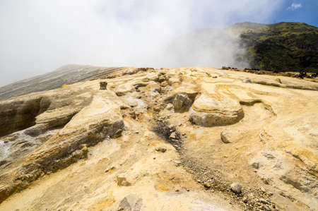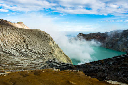 View from Ijen Crater, Sulfur fume at Kawah Ijen, Vocalno in Indenesia