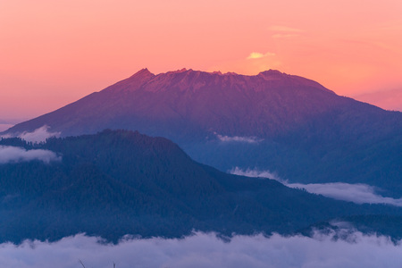 sunrise with fog at mountain of volcano