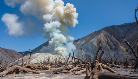 Dead tree in the crater of the volcano of Kawah Ijen, Indonesia