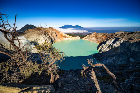 Dreamscape of the Ijen volcano with the turquoise-coloured acidic crater lake.