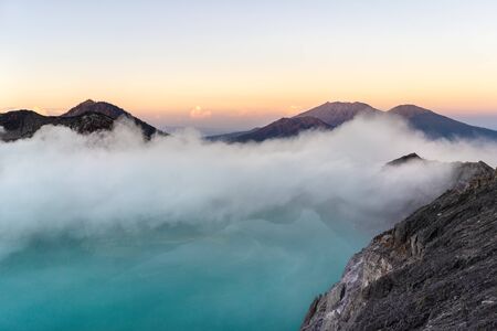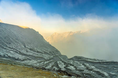 Landscape of mountains amount fog in Kawah Ijen volcano, Java, Indonesia.