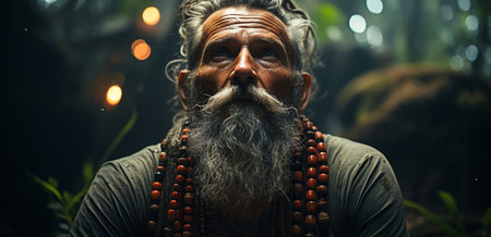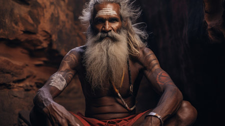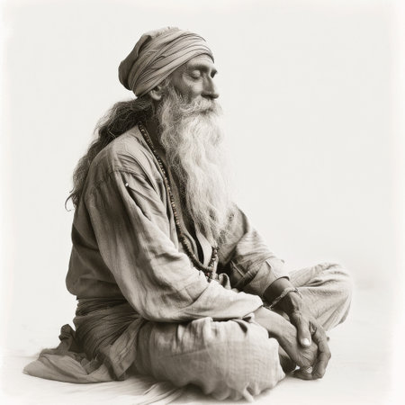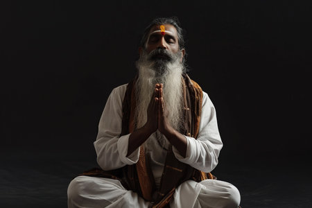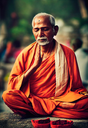 An Elderly Indian Man Meditates, A Yogi in the Lotus Position, Generative AI Illustration