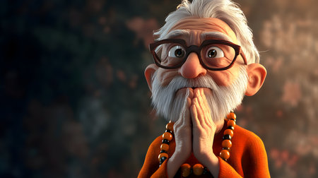 An old Buddhist monk dressed as a monk. Meditating Buddhist monk. Portrait of an ancient wise elder. 3D render