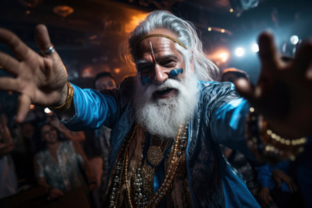 image depicts a striking representation of the indian god Shiva Purana showcasing his long hair and beard emphasizing his powerful presence and wisdom.