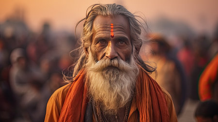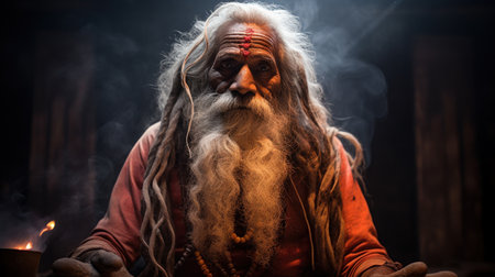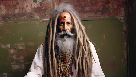 Mystic Sadhu in Traditional Attire with Ornate Background