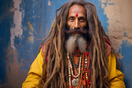 Portrait of Sadhu with dreadlocks in the old city.
