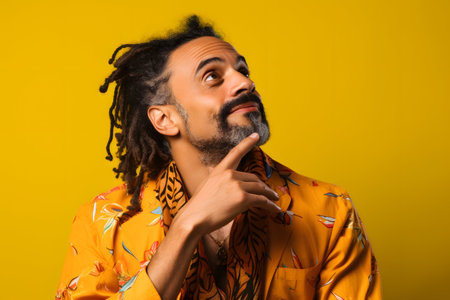 Portrait of handsome african american man with dreadlocks on yellow background