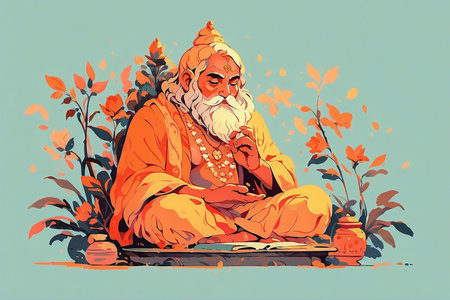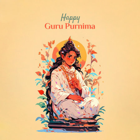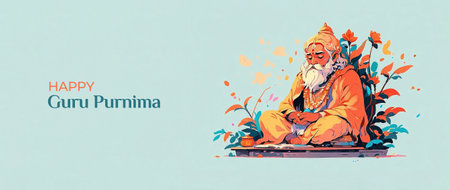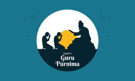 Happy Guru Purnima Indian Spiritual Festival Illustration in Flat Silhouette Style. Perfect for Greeting Cards, Posters, Banners, and Spiritual Event Graphics.