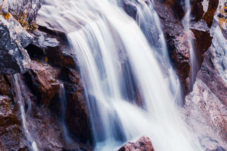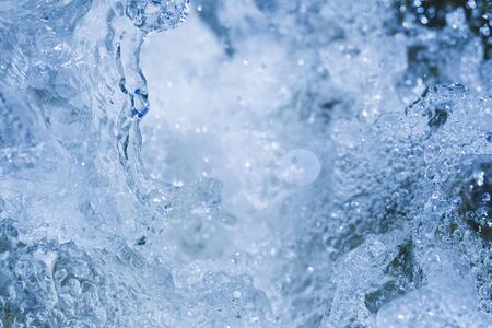 Abstract nature background. Image of the water surface of a forest stream. Bubbles and flow of water