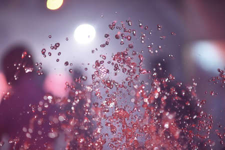 Drops of water close-up macro with a sunlight fall on the heavy splash water surface on a blue background