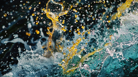 Close-up of dynamic water splashing, creating an array of bubbles and droplets in a vibrant, energetic scene.