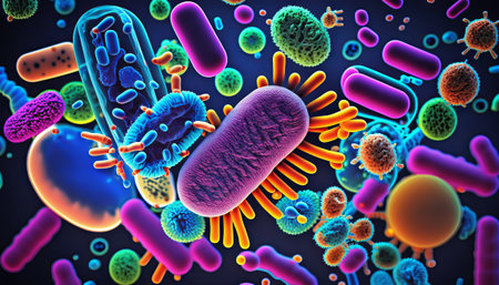 Microscopic view of bacteria vibrant colors understanding infections