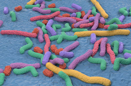 Colorful intestinal bacteria close-up