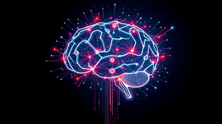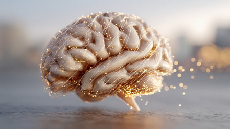 Digital representation of human brain showcasing complex neural activity and artificial intelligence