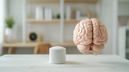 Human Brain Model Isolated on Blue Background with Copy Space Representing Intelligence, Neuroscience, and Mental Function