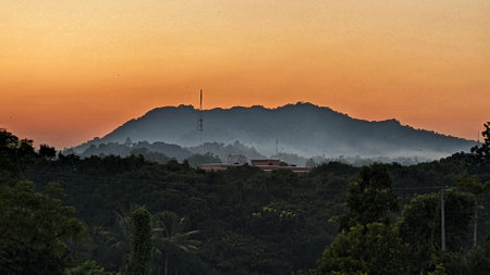 Light of sunset with mountains background in thailand