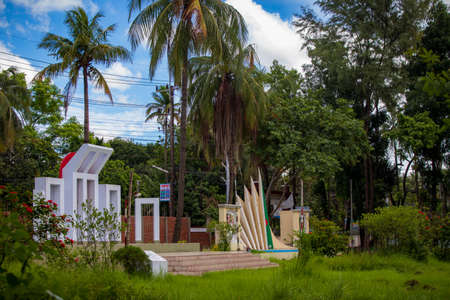 Khulna, Bangladesh, February 28 2017: City center with park and pond in Khulna in the evening light