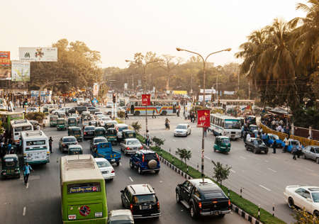Feb 12, 2012 Dhaka, Bangladesh - Bad Traffic jam with many cars and buses on Dhaka city street with smoke and pollution. Bangladesh