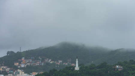 Mountain road in rainy and foggy day,Road to Pai