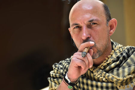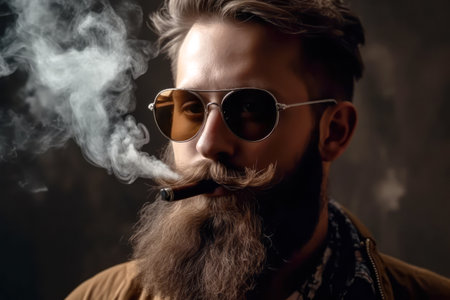Bearded guy smoking cigar.