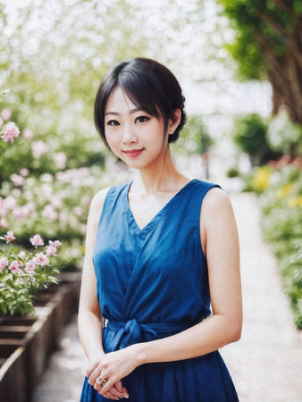 beautiful asian woman at outdoor fresh park, generative AI