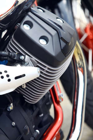 Color detail of the engine of a motorcycle.