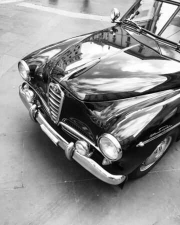 Turin, Italy - juni 20, 2021: front detail of a car exhibited at the Turin automobile museum