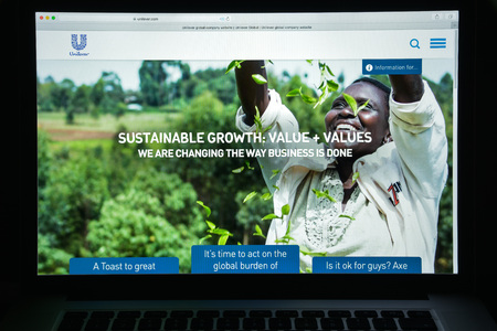 Milan, Italy - August 10, 2017: Unilever website homepage. It is a Dutch-British transnational consumer goods company. Unilever logo visible.
