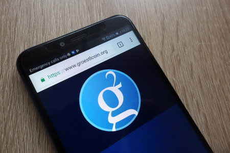 KONSKIE, POLAND - JULY 17, 2018: Groestlcoin (GRS) cryptocurrency website displayed on a modern smartphone