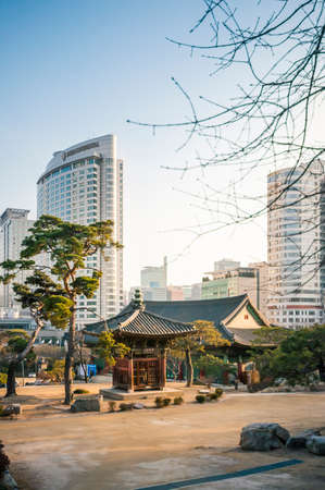 Seoul, South Korea - March 03, 2015 : Tradition building in Bongeunsa temple. Korean Buddhism has also contributed much to East Asian Buddhism.