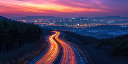Panoramic view of Daejeon city with sunset sky in Korea