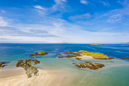 County Donegal in Ireland. Drone point of view. Summer view of Muckross Bay Beach near Killybegs. Part of Wild Atlantic Way.