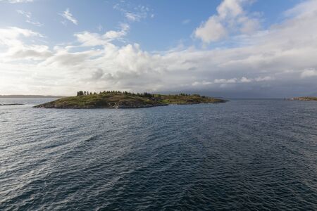 Beautiful seascape with mountains and lake in cloudy day.