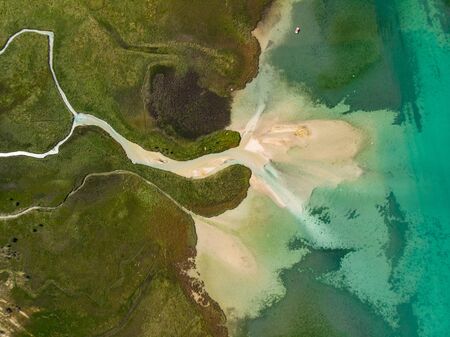 Aerial view of beach at the mouth of the Veleka River, Sinemorets village, Burgas Region, Bulgaria