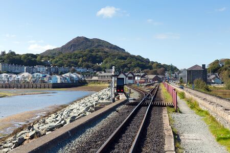 UK, Wales, 12.06.2021:Views of Snowdonia National Park and the old iron dog with the old train going up the mountains