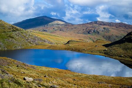 Lake and mountains at the background in Snowdonia National Park in Wales