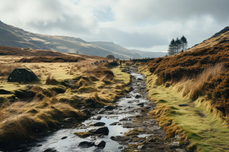 Wicklow Mountains view in Ireland. Irish landscape. Green dark view.