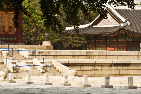 various architecture and traditional historic elements in Changdeok gung palace in Seoul, South Korea.