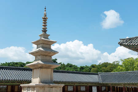 Gyeongju, South Korea - August 18, 2016: The stone pagoda Seokgatap in Bulguksa temple, South Korea.