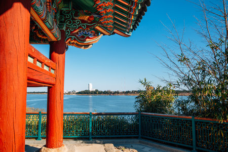 Jukdobong Park Korean traditional pavilion in Suncheon, Korea (Translation is Yeonjaru)