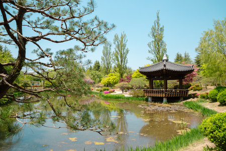 Bomun Tourist Complex, traditional pavilion and spring garden in Gyeongju, Korea