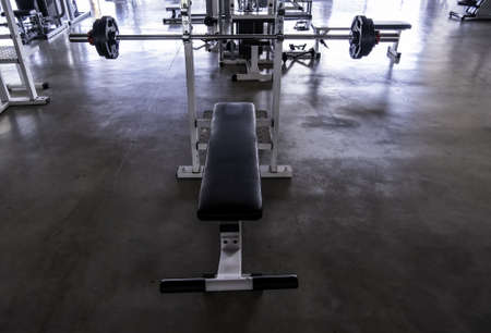 Abstract blur and defocus fitness equipment in gym interior room for exercise and background