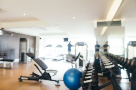 Abstract blur and defocused fitness equipment in gym interior for exercise