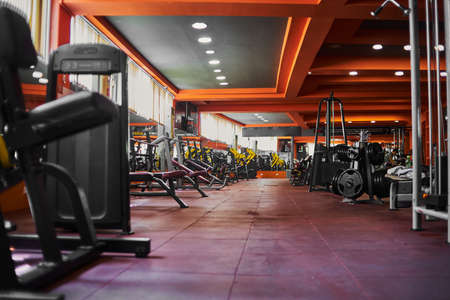 Within gym with modern fitness equipment for fitness events and more. Modern of gym interior with equipment. Sports equipment in the gym.