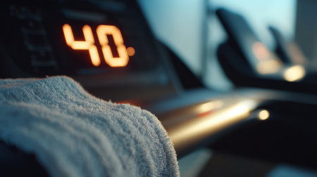 POV of Running on Treadmill with Digital Display and Sweat Towel in Gym