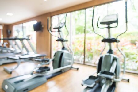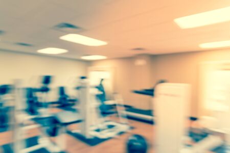 Abstract blur and defocused fitness equipment in gym interior for exercise