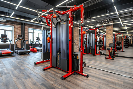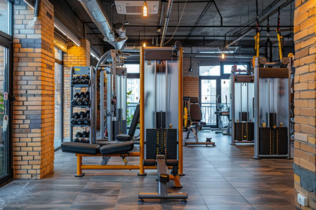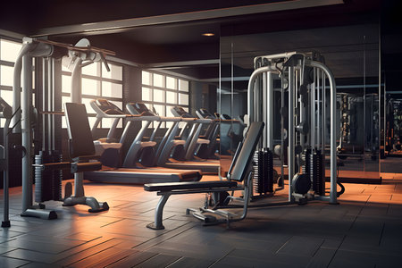 Contemporary fitness center displaying state of the art equipment in a modern indoor gym setting