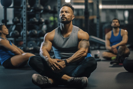 group healthy exercising sport lifestyles person fitness fit training gym. Generative AI.
